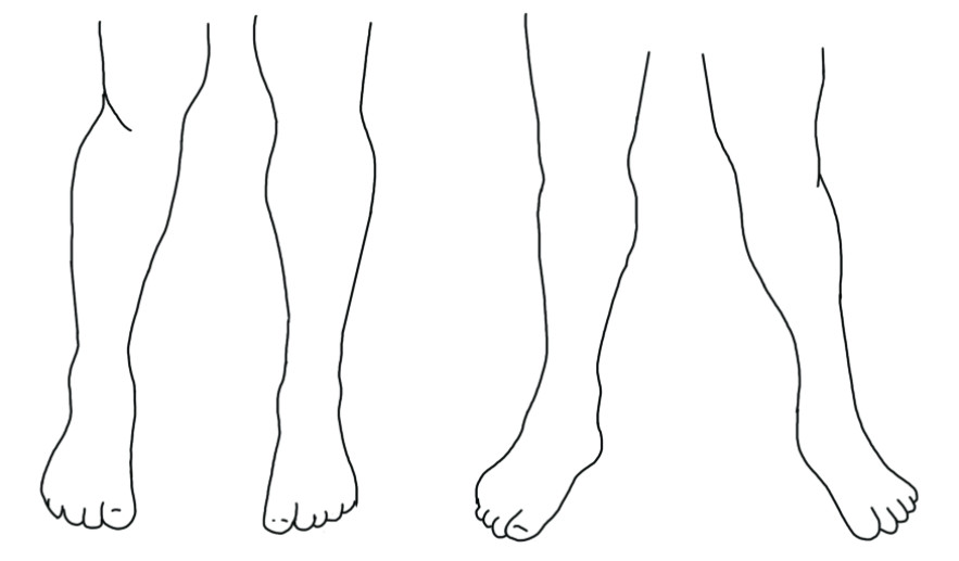 A jól működő térdkalács egyenesen előre áll. A fenti képen a kifordult és a befelé fordult térdek láthatók. Az ön térdkalácsa állhat a kifordult lábfej irányba vagy teljesen más szögben. Lehet, hogy a két térdkalács iránya egyáltalán nem egyezik: egyik magasabban lehet, mint a másik, középre vagy oldalirányba csavarodhat, vagy alakjuk jelentősen különbözik . A kétoldali szimmetriájú testen a jobb oldal a balra emlékeztet. Az eltérések azt közlik velünk, hogy aszimmetria van kialakulóban, és térde magára marad. Ahelyett, hogy hajlításkor és feszítéskor derékszögbe hajlanának, könnyedén elfordulnának, és visszatérnének semleges helyzetükbe, a csontokat az improvizáló izmok összevissza rángatják. Feszesség, merevség, néha gyengeség, végül fájdalom követi egymást. Ez az utolsó tünet roppant változatos, az enyhe és közepes fájdalomtól a hasogatóig, ami arra kényszeríti az „áldozatot”, hogy egyáltalán ne hajlítsa be a térdét.