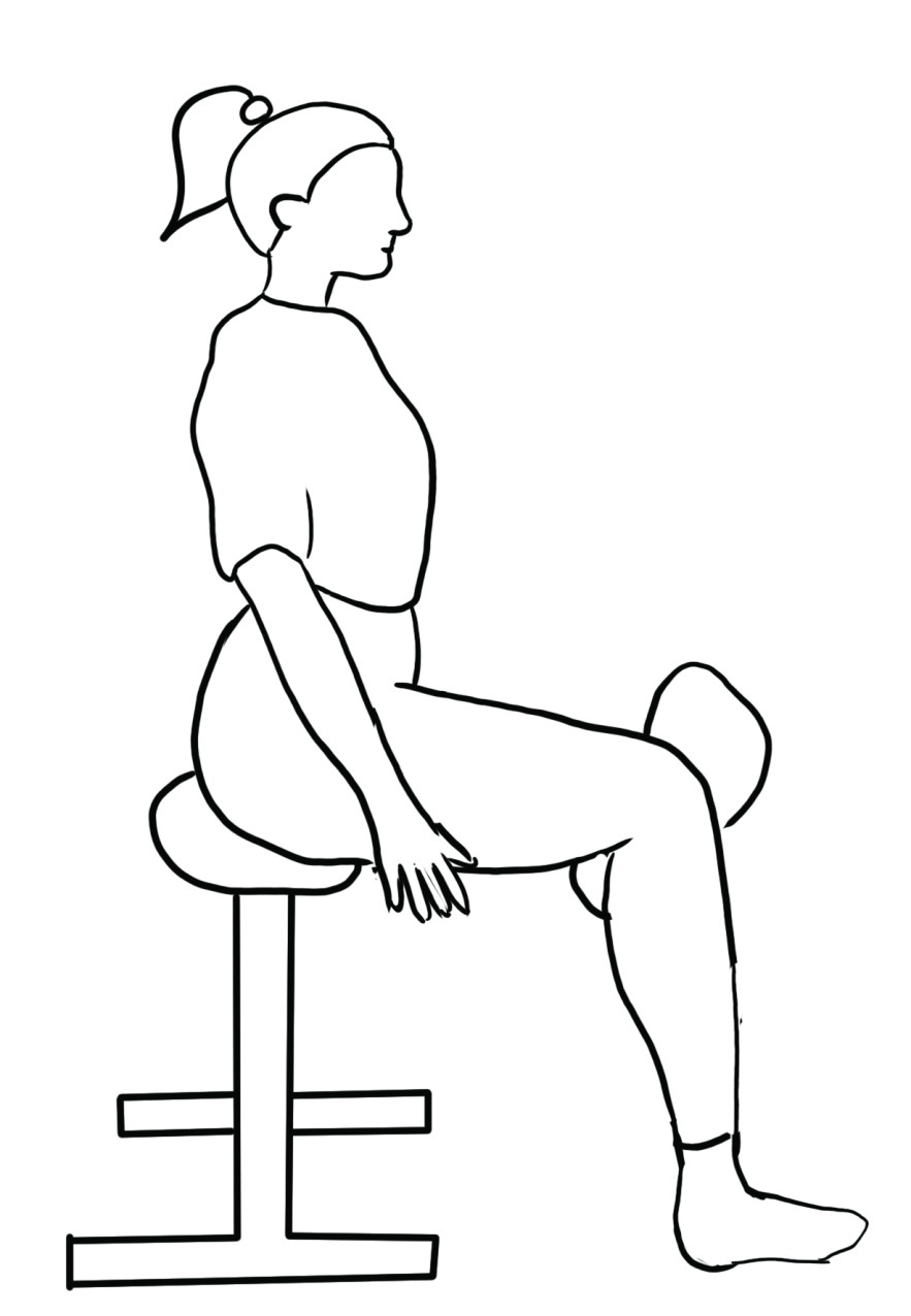 Üljön egy szék vagy pad peremére, és homorítsa a hátát a csípő előregördítésével. Húzza hátra a vállát, és figyeljen arra, hogy térde és lábfeje csípőjével egy tengelyben legyen. Lazítsa el gyomorizmait, hagyja őket lógni. Helyezzen egy kispárnát a két térde közé, és combja belsejének izmait használva tartsa a párnát térdei között, majd finomon eressze el. Lehet, hogy össze kell hajtania a párnát, hogy tömörebb legyen. A két lábfeje egymással párhuzamos legyen, és ügyeljen, nehogy a gyomor kör nyéki vagy hátizmai részt vegyenek a párna tartásában. A közelítő – és távolító izmok elsődleges feladatukat teljesítik, ahelyett, hogy a járóizmok munkáját vennék át.