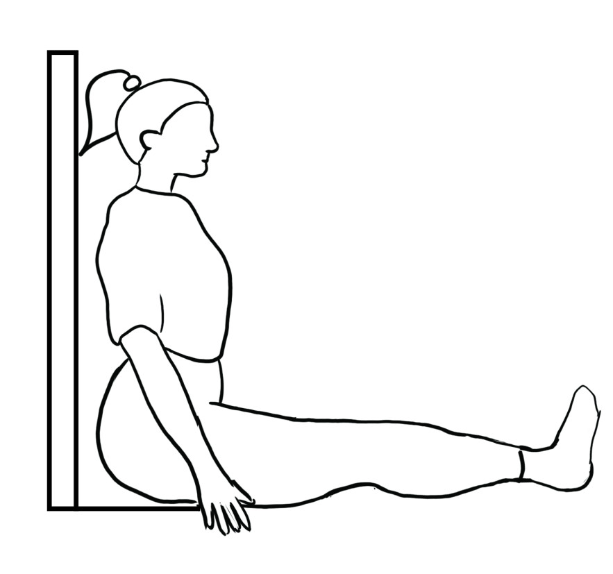 A falnak támaszkodva üljön le, lábát nyújtsa ki egyenesen előre. Két vállát feszítse hátra, tartsa így, de ne emelje fel. Feszítse meg a combját, és hajlítsa be a lábát úgy, hogy a lábujjai teste felé mutassanak. Karját hagyja az oldalánál, vagy nyugtassa a combján. Maradjon így négy-hat percig. Ez a gyakorlat helyrehozza a váll, a csípő, a térd és a boka által alkotott láncot.