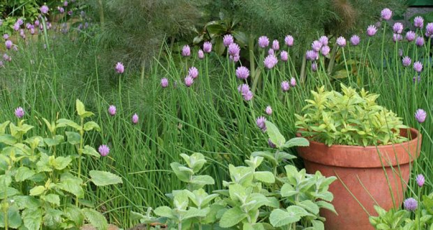 A pihenőkertek többségében a gyep mellett akad virágágyás is. A virágágyás díszítő hatását kombinálhatjuk a zöldségágyás hasznával. A zöldségek, fűszer- és gyógynövények az esetek többségében kedvelik a társaságot, kifejezetten jó hatással vannak egymásra. Ezen alapul a növénytársítások öngyógyító hatása. Egyes növények elűzik a másik kártevőit, megvédik azt a betegségektől. A levendula elűzi a rózsáról a levéltetveket, a sárgarépa szagát nem kedveli a hagymalégy, a hagymáét pedig a sárgarépalégy, a sárgarépa szomszédsága jó hatással van a paradicsomra, míg a zeller megvédi a káposztaféléket a káposztalepke hernyójától. A saláta távol tartja a földibolhát a retektől, és árnyékol is, a mustár elriasztja a csigákat, a kapor elősegíti a sárgarépa kelését, és bármilyen társításban kitűnő egészségvédő hatású szomszédnövény, a kömény és a koriander nélkülözhetetlen a konyhában, társnövényként pedig javítja a burgonya ízét, stb. A körömvirág, a menta, a citromfű nemcsak mutatós, de kedvelt teanövény is. A citromfű és a menta évelő, erőteljesen szaporodik, igen igénytelen. A balkonon, teraszon fűszer- és gyógynövényekből alakíthatunk ki dézsakertet.
