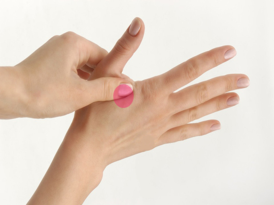 A képen látható pontot mindkét kézen erőteljesen masszírozd 3-5 percig.