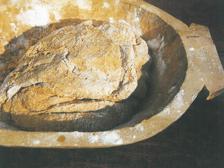 A rozslisztet langyos vízzel és a csipetnyi sóval tésztává dagasztjuk, és meleg helyen egy éjszakán át pihentetjük.