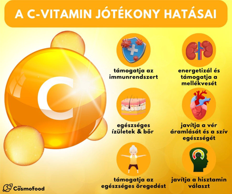 Ezért érdemes a természetes, élelmiszerrel történő C-vitamin bevitelt kiegészíteni (főleg azokban az évszakokban, amikor helyben nem terem meg a C-vitaminban gazdag zöldség és gyümölcs). A választásnál a legfontosabb szempont, hogy a kiegészítésképpen fogyasztott C-vitamin természetes eredetű legyen, és szerves formában jusson a szervezetbe. Különben nagyon csekély mértékben hasznosul. Erre a célra tökéletesen megfelelnek a myCosmofood gyümölcs- és zöldségkristály keverékei, amelyek a kíméletesen feldolgozott zöldségek és gyümölcsök valamennyi összetevőjét szerves formában tartalmazzák.