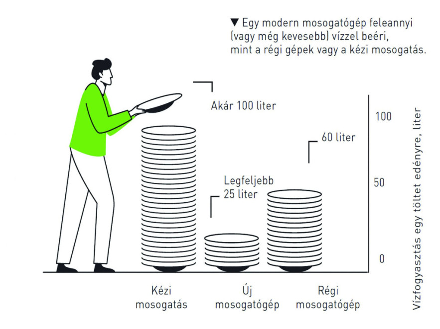 3. Inkább mosogatógép, mint kézi mosogatás. Gondoltad volna, hogy egy jól megnyitott csapból percenként 9 liter víz folyik ki, az újabb gépeknek viszont elég mindössze 25 l? Energiatakarékos programmal, előöblítést elfeledve ráadásul 20% áram is megspórolható.