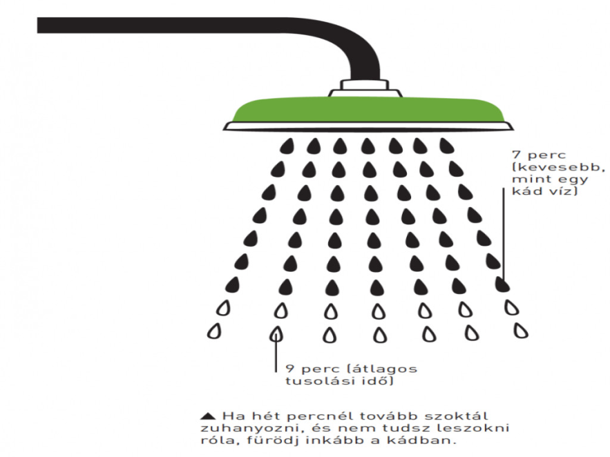 2. Ha gyorsan megvagy, zuhanyozz, ha nem, irány a kád! Átlagos tusolási időnk 9 perc. Ha 7 percnél többet töltesz a rózsa alatt, akkor inkább engedj magadnak egy kád vizet, úgy leszel környezetkímélőbb.