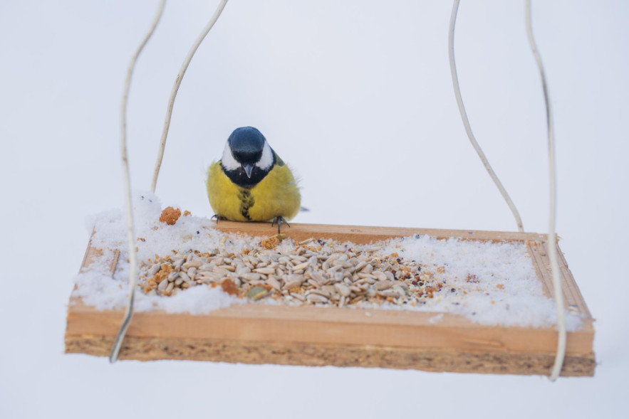 Helyezzünk ki madáretetőt a kertünkbe, és a megfelelő időszakban rendszeresen töltsük fel megfelelő élelemmel!