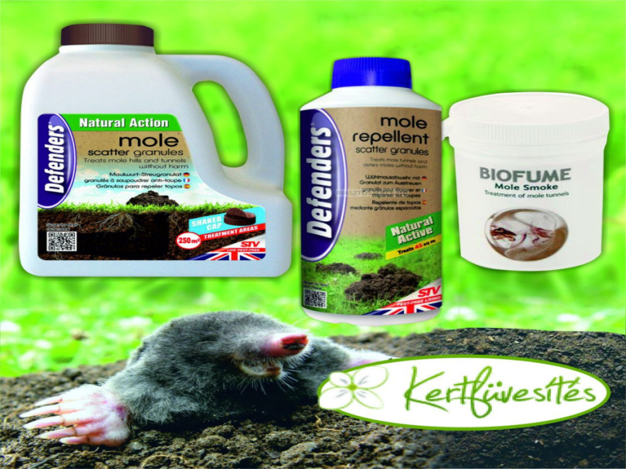 Ehhez a ricinus tartalmú szereket ajánlom. Ha már benn garázdálkodik a kertben, akkor a Biofume füstpatronnal a járatait lehet kellemetlenné tenni számára. Majd, ha már biztosan visszavonulót fújt, a Defenders Vakondriasztó granulátummal kell kb. 2 méter szélességben a kerítés körül „felhúzni a láthatatlan várfalat”. Mivel kedvező áron, gazdaságos 2,5 kg kiszerelésben is rendelkezésére áll a kertészkedők számára, már nincs akadály a annak, hogy az egész kert területét rendszeresen ( három havonta) kezeljük.