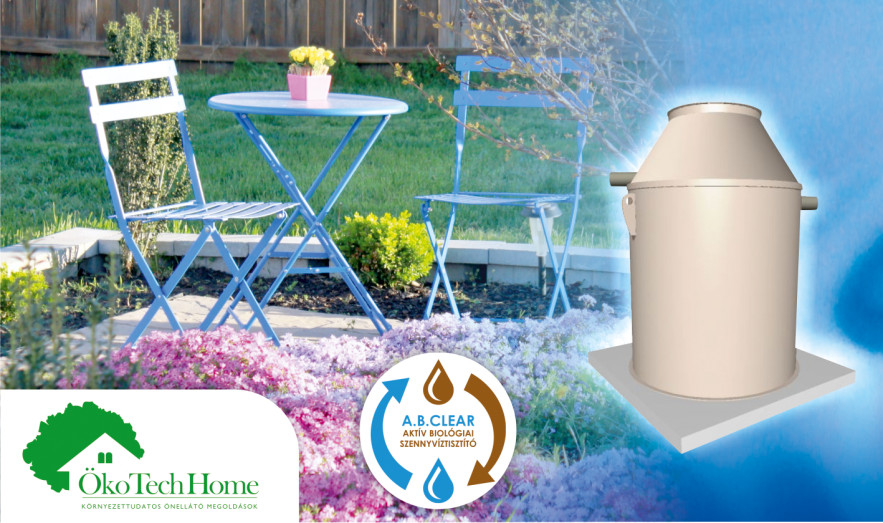 A víz újrahasznosításának innovatív és kiemelten környezetbarát megoldását kínálja az Öko-Tech Home egyedülálló szabadalma, az iszapzsákos technológiára épülő A.B.Clear biológiai szennyvíztisztító berendezés, ami: