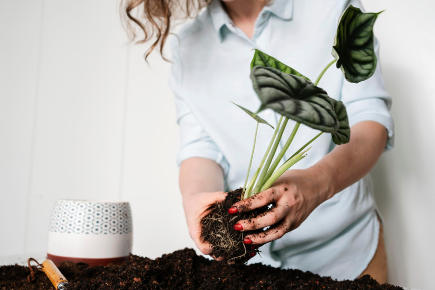 Emeljük ki a növényt és földlabdáját a cserépből, ha a gyökérzet már teljesen áthálózta a földet, eljött az átültetés ideje. Néhány növény azonban akkor virágzik dúsabban, ha gyökérzete „beszorítva” érzi magát, (pl. afrikai szerelemvirág), ezeket csak akkor ültessük át, ha már szétfeszítik az edényt.