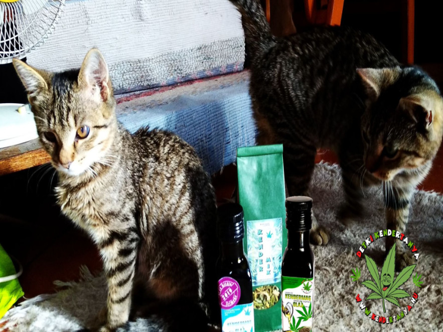 Sajnos a területünk macskanátha vírussal fertőzött. Sok kiscicát vesztettünk emiatt. Az állatorvosi kezelések mellett a kenderolaj igen hatékonynak bizonyult ennek kezelésében is. A kenderfőzettel pedig nagyon jól kezelhető nem csak a szemgyulladás, de minden más seb, fekélyes kelés is. A cicusoknak kis fecskendővel adagoljuk az olajat, egy 3-4 kg-os cicónak 0,5 ml/nap az adagja. Kutyusoknál 7 kg-onként 2 ml a javasolt adag. Ez CSAK a mi kenderolajunkra vonatkozik. Más gyártó termékei más adagolást kívánnak. Erről az adott gyártónál kell érdeklődni.