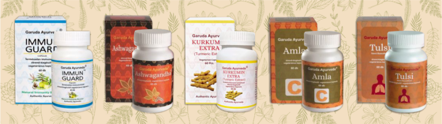Ezek a gyógynövények alkotják Garuda Ayurveda Immunguard kapszula készítményünket, de elérhető kínálatunkban a Garuda Ayurveda Ashwagandha kapszula, a Garuda Ayurveda Kurkumin Extra kapszula, a Garuda Ayurveda Amla kapszula és a Garuda Ayurveda Tulsi kapszula külön termékként