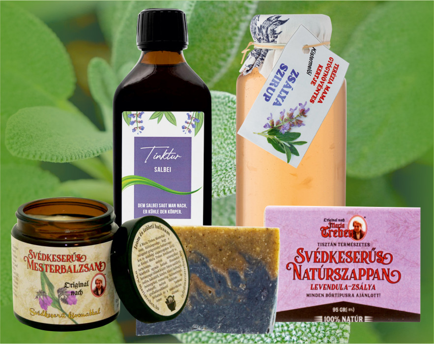 Ezt az egészség szempontjából sokrétű gyógynövényt már az ókorban is ismerték és alkalmazták az orvoslásban. Maria Treben is tanulmányozta és feljegyzéseket készített róla. Megfigyelései szerint a zsálya hatóanyagai élénkítik a vérkeringést, gyulladáscsökkentő hatásúak, nyugtatják az idegrendszert, valamint segítik a sebgyógyulást. Emiatt külsőleg masszázskrémekben, kenőcsökben alkalmazva, vagy fürdővízhez adva remekül használható izom- és ízületi fájdalom esetén, kisebesedett és irritált bőr regenerálására.