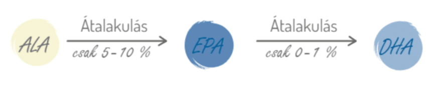 Bár a szervezet képes az ALA-t az egészségre fontos omega-3 zsírsavvá, EPA-vá, majd DHA-vá alakítani, az EPA-vá és DHA-vá való átalakulás mértéke egyénenként nagyon eltérő, és számos befolyásoló tényezőtől (például életkor, nem, testsúly és anyagcsere) függ. Átlagosan csak kb. 0,5-10 % (ebből kb. 5-10 % alakul át EPA-vá és 0-1 % tovább DHA-vá).