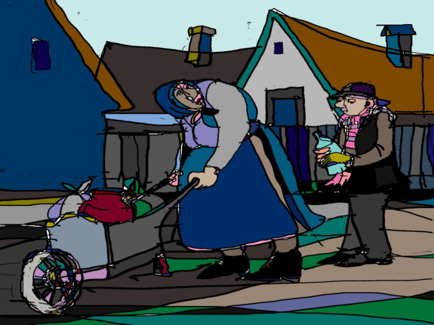 Még jókor érkeztem. Böbe néni éppen a házából tolta ki a megrakott talicskát, amin legfelül büszkén trónolt egy piros zsírosbödön. Elhadartam, amit nagypapa üzent, és kezébe adtam az üveg pálinkát.