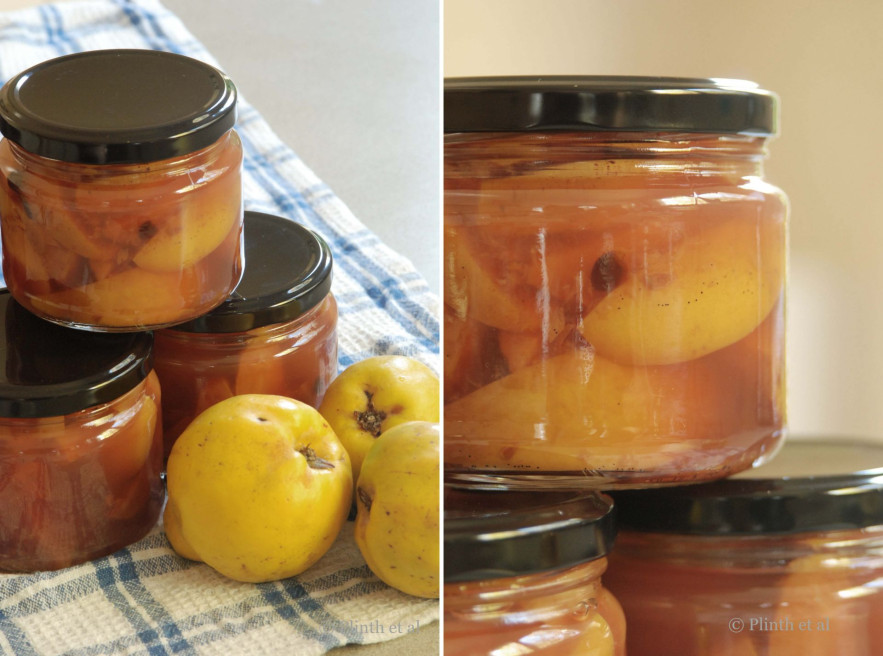 Másnap elővesszük az edényt, a birsalmadarabokat lecsöpögtetjük és befőttes üvegbe rakosgatjuk őket. Előkészítünk 2 liter vizet a cukorral és a fűszerekkel és egy nagy lábasban felforraljuk.