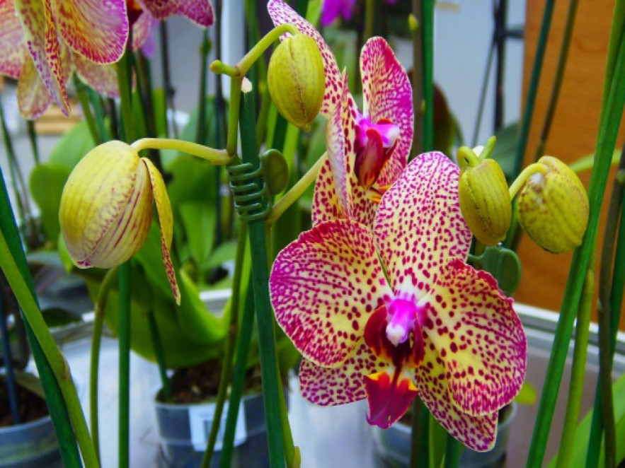 Az orchideák nevelő-csarnokaiba nem léphetünk be, mert a növényekre veszélyes kórokozókat, fertőzéseket vihetnénk be a ruhánkon, cipőnkön, de bekukucskálni azért lehet pár helyen.