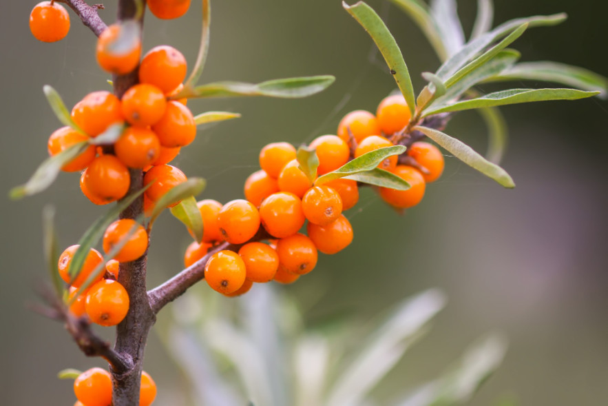 Korunk egyik legértékesebb gyógynövénye. A homoktövis „titka” a benne lévő, legalább 190 biológiailag aktív anyag szinergenciája, vagyis egymást erősítő hatása. Gyönyörű narancssárga termése számos vitamint tartalmaz (A-,B1-, B2-, B6-, B8-, B9-, K-, P-, PP- és E), ezenkívül karotinoidokat, ásványi anyagokat (vas, magnézium), mikroelemeket, flavonoidokat. E-vitamin hatóanyagtartalma 202.9 mg/100 g gyümölcs, ez magasabb mint a búza, kukorica és szójabab E-vitamin tartalma. Az olajában nagy mennyiségben mutatható ki alfa-linolénsav (Omega-3), linolsav (Omega-6), olajsav (Omega-9), palmitolajsav (Omega-7) cis-vaccénolaj-sav, b-sitosterin (erős koleszterincsökkentő anyag), fitoncidok és nyomelemek.