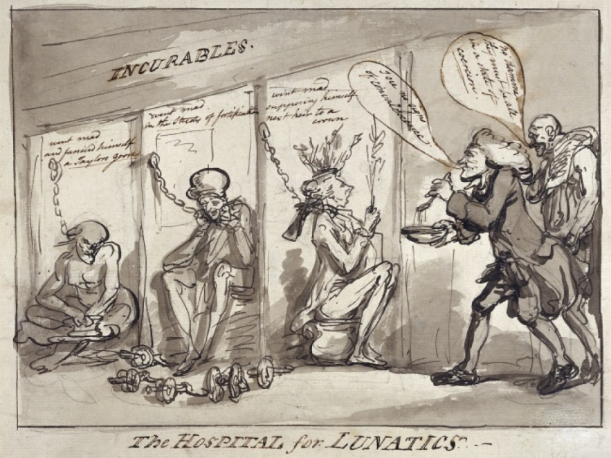 A régmúlt időkben az elmegyógyintézetek lakóit rettenetes körülmények között tartották, még enni is alig kaptak. Mindezt annak ellenére, hogy a hozzátartozók fizették az ellátás költségeit. Ez nem volt elég a fenntartóknak: rendszeresen szerveztek "kirándulást" az érdeklődőknek, akik végigsétálhattak az intézményben és igény szerint, a botjukat is használhatták a szerencsétlen bentlakók ellen.
