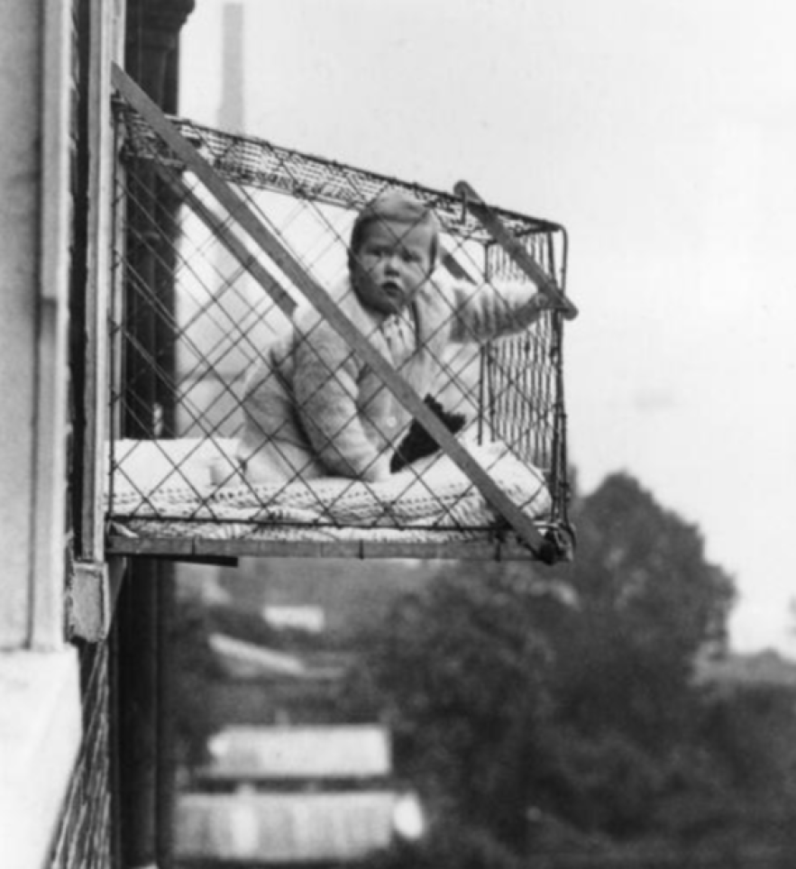 Te kilógatnád a képen látható módon a gyerekedet a lakásból? Biztosak vagyunk benne, hogy nem, pedig az 1930-as években Nagy-Britanniában gyakran lehetett találkozni ezzel a "kreatív" megoldással. Míg a baba friss levegőt szívott, anyuka a háztartással foglalatoskodott. Hihetetlen, de ezt a ketrecféleséget a kor teljesen biztonságosnak ítélte meg!