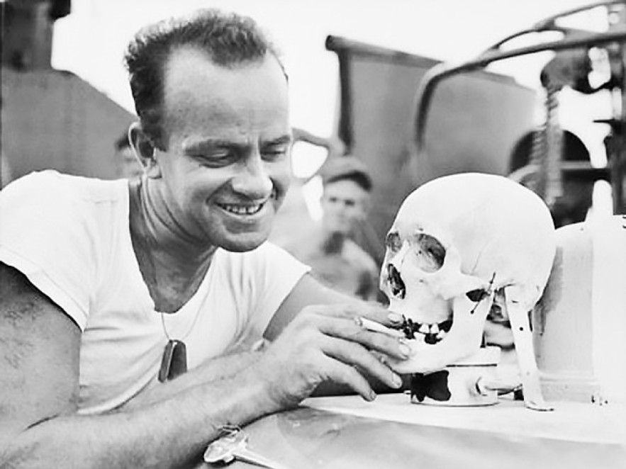 Manapság már eszelős pszichopatának neveznénk azt, aki emberi testrészeket gyűjt. A dolog viszont cseppet sem keltett ekkora visszatetszést néhány évtizeddel ezelőtt. A katonák körében például elfogadott volt ellenségük koponyáját trófeaként megőrizni. Így tett ez a képen lévő amerikai tengerész is, aki egy japán katona koponyáját mutogatta a második világháború után.
