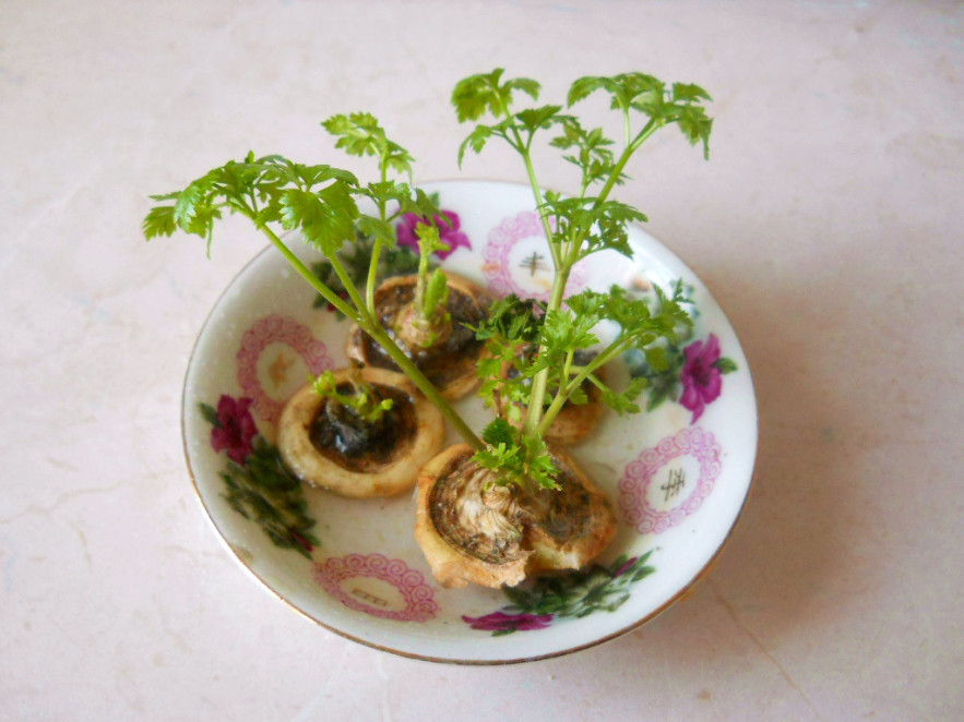 Még ettől is egyszerűbb módszer az, ha a gyökerek felső, 3-5 cm hosszú részét vízzel félig töltött kis műanyag (joghurtos) pohárba helyezzük. A vizet rendszeresen cseréljük.