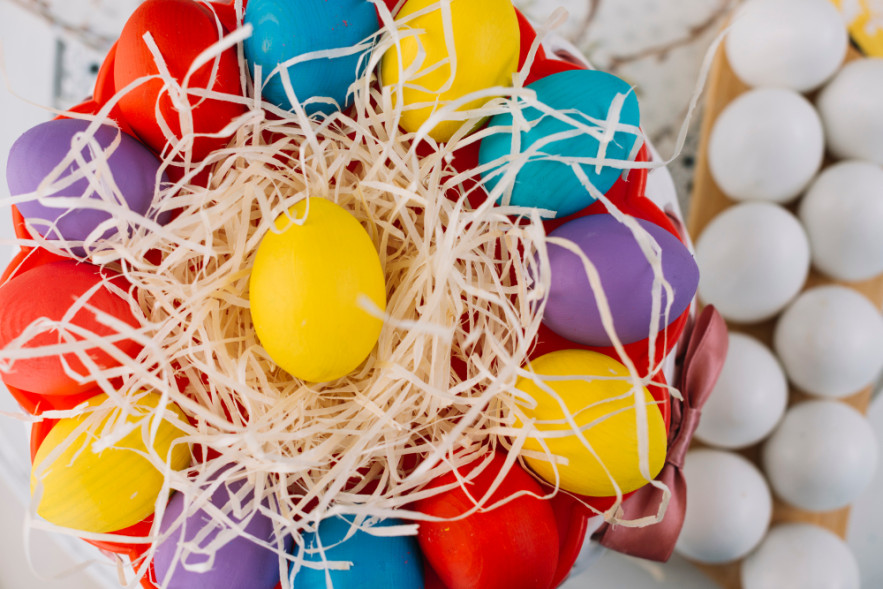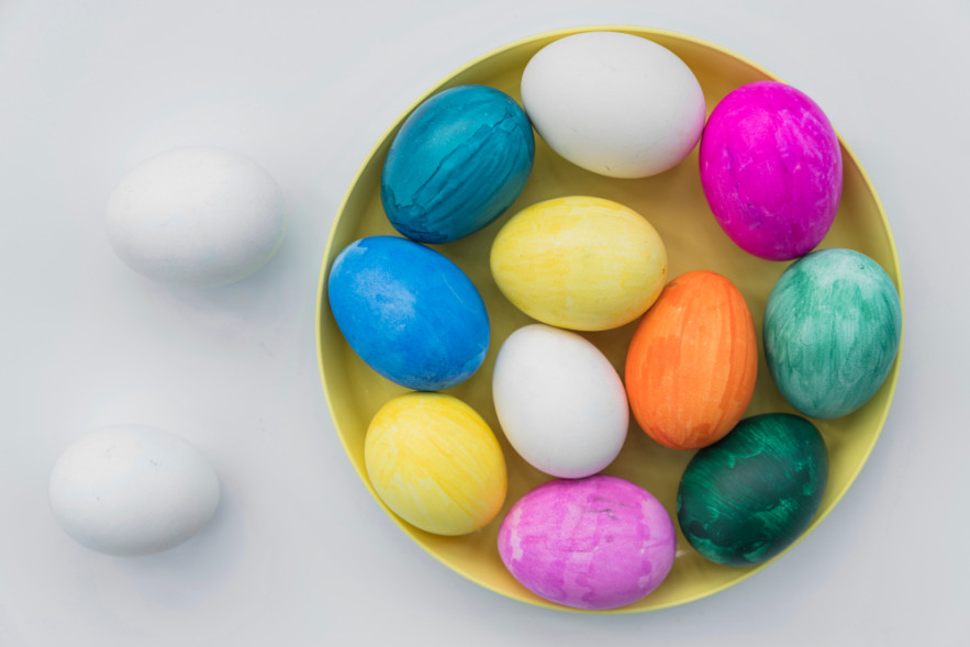 Három lábasban 2, 2 és 4 dl vizet forralunk. Az egyik 2 dl-esbe belekeverjük a feldarabolt céklát, a másikba a kurkumát, a 4 dl-esbe pedig a felaprított lila káposztát. 10 percig kis lángon forraljuk, majd szűrőn át 4 pohárba öntjük. Minden színhez hozzákeverjük a sót és az ecetet, az egyik lila káposztáshoz a szódabikarbónát is. Jól elkeverjük, és mindegyikbe 2-2 tojást teszünk. Pár óráig pácoljuk bennük, majd leszűrjük, és a színes tojásokat tálalásig hűtőben tároljuk.