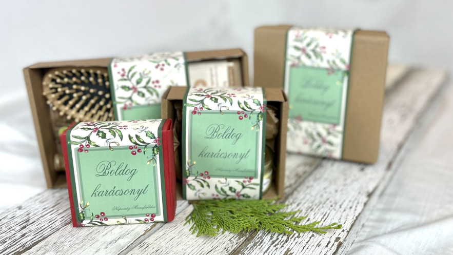 Az idei három új karácsonyi csomagban nem csupán a már megszokott, prémium minőségű natúrkozmetikumokat találhatjuk meg, hanem a hozzájuk illő természetes, ökotudatos kiegészítőket egyaránt. A manufaktúra egyik kedvence az „Egészséges fürtök” nevű kedves kis csomag, melyben egy szilárd samponszappan kapott helyett csalánporral, görögdinnyemag- és ricinusolajjal gazdagítva, vanília és bergamott esszenciális olajokkal illatosítva; egy száraz töredezett hajra kifejlesztett avokádó-, kendermag olajjal és mézzel dúsított hajvégápoló, melyek mellé egy prémium kifésülő hajkefe is jár a csomagban, teljessé varázsolva így a szettet.