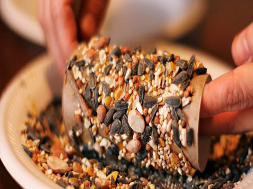 Ehhez a jópofa madáretetőhöz néhány WC papír gurigára, egy kis zsírra és különböző magokra van szükség.