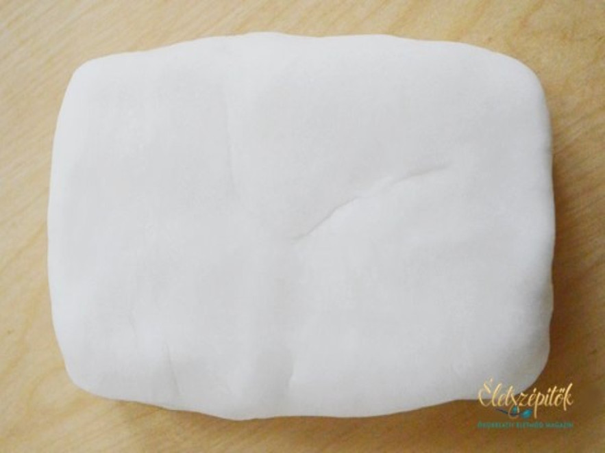 Lapítsuk ki kb. 3-4 milliméter vékony lappá (több részletben dolgozzunk), ha a nyújtófára ragadna a massza, törölgessük le, hogy áthengerelve sima felületű maradjon.