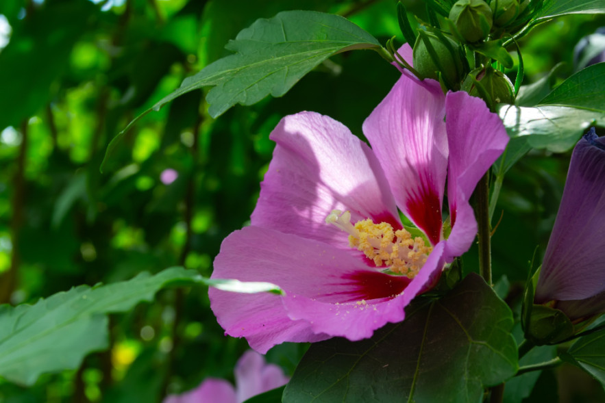 Nyári időjárásunk tökéletesen megfelel a hibiszkuszok igényeinek, hiszen sok fényre van szükségük, és kiválóan viselik a tűző napsütést. Teleltetés után, ha az éjszakai hőmérséklet eléri a 12-15 fokot, fokozatosan szoktassuk a napsütéshez. Ha azonnal a tűző napra állítjuk cserepét, levelei megperzselődnek, és lehullanak. Az 1-2 hetes félárnyékban történő szoktatás után bátran állíthatjuk az eredeti élőhelyéhez hasonló napos, meleg helyre. Sok napsütés hatására erős, jól fejlett, dúsan virágzó hibiszkusznak örülhetünk.