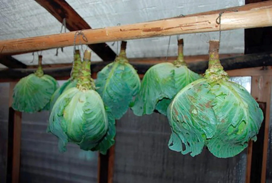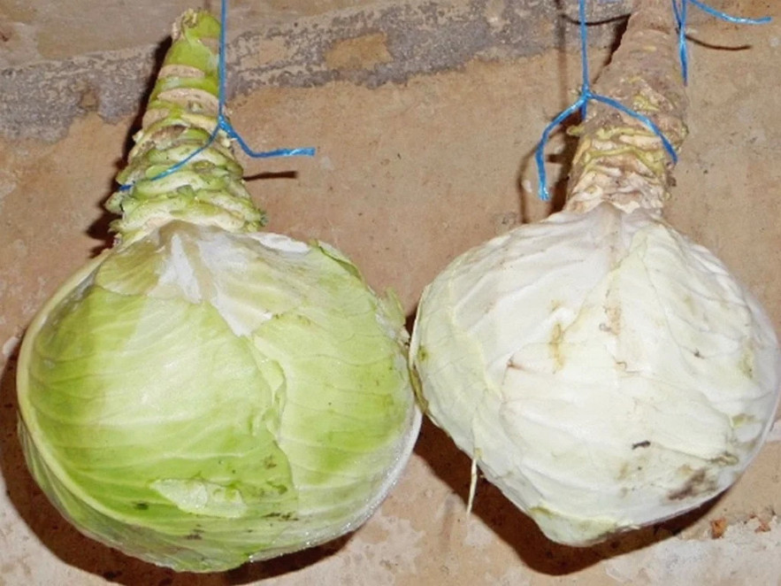Ha csak kis mennyiségű fejes káposztát szeretnénk tárolni, akkor azokat gyökerestül kiszedve, a nagy földdarabokat lezárva, fejjel lefelé nedves, hűvös helyiségben kifeszített zsinegre felakasztva vagy fapolcra helyezve is tárolhatjuk.