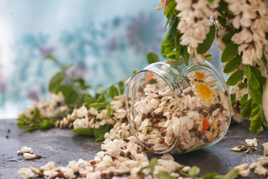 Első lépésként gyűjtsünk akácvirágot. Természetesen járműforgalomtól távol eső helyről, hogy a lehető legkevesebb szennyeződés legyen a szirmokon. csípdessük le a virágokat a szárról, és áztassuk be hideg vízbe egy fél órára, hogy biztosan nem maradjon benne bogár. Mossuk át alaposan, csepegtessük le, majd a cukorral, 1 liter vízzel meg a feldarabolt citrommal együtt körülbelül 20 percig lassú tűzön főzzük. A tűzről levéve egy napig állni hagyjuk. Leszűrjük, jól kinyomkodjuk a virágokat, hozzáadjuk a dzsemfixet és újra felfőzzük, egészen addig, amíg sűrűsödni kezd. A végén hozzáadjuk a citromsavat, a mézet és a nátrium-benzoátot is.