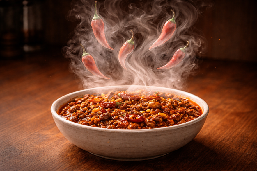 A chili paprikák csípősségéért egy kapszaicin nevű vegyület felel, amely a száj hőérzékelő idegvégződéseire – tudományosan TRPV1 receptorokra – kötődik. Ezek a receptorok normál esetben valódi hőre reagálnak, a kapszaicin azonban becsapja őket: pontosan ugyanolyan jelet küld az agyba, mintha forró tárgyat érintenénk. Az égő érzet tehát nem kémiai sérülés, hanem egy nagyon meggyőző idegi illúzió.