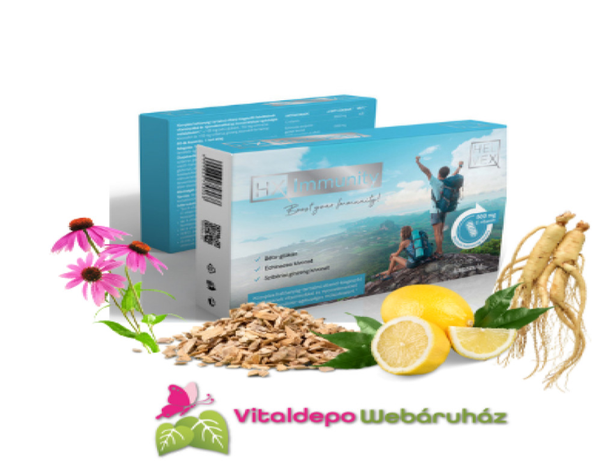 13 immuntámogató hatóanyagot (pl. 3000NE D-vitamin, 500mg nyújtott hatású C-vitamin, B-vitaminok, echinacea, béta-glükán, vas, cink, szelén stb) tartalmazó HX Immunity!