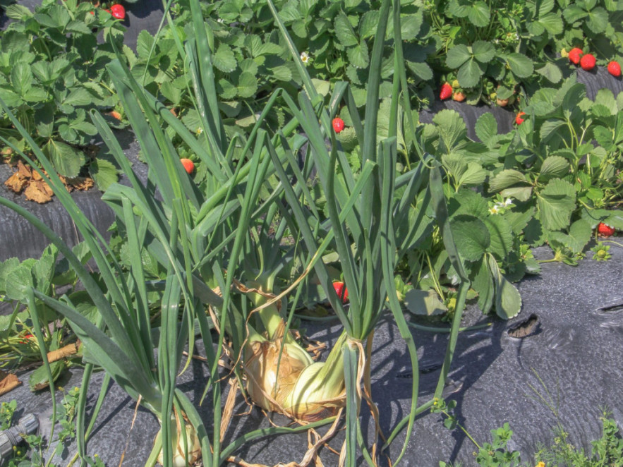 A hagymafélék táplálkozásunkban nemcsak szükségesek, de egyenesen nélkülözhetetlenek. Ugyanígy nélkülözhetetlenek a kertben is. Eddig a hagymafélék számára felfedezetlen hely volt a szamócaágyás. A helyszükséglet és fényigény szempontjából szomszédságuk igencsak kedvező. A hagyma nem árnyékolja az epret, hiszen bár magas lesz, de keskeny, így a szamóca szabadon terjeszkedhet a talajon.