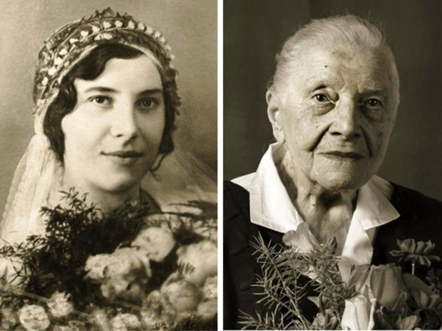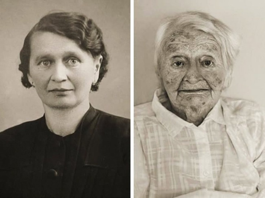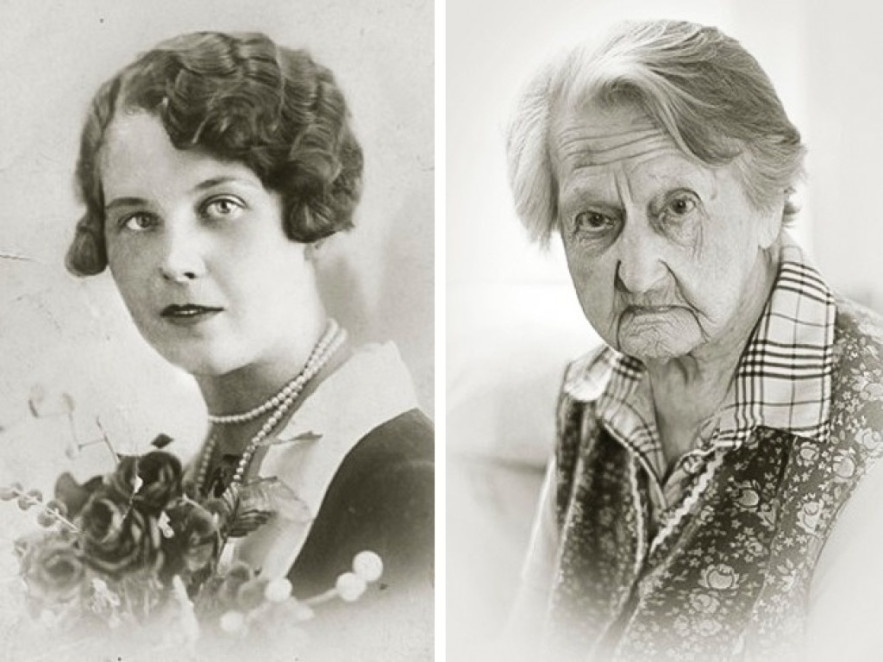 A bal oldali kép Anna esküvője után készült. A most egy idősek otthonában élő Anna egy gazdaságban dolgozott. Imád szerelmes regényeket olvasni. Sosem fogja elfelejteni, mennyi népdalt énekelt egy gyerekkórusban, mint ahogy azt sem, hogy a háború elragadta mellőle a férjét. Legnagyobb vágya, hogy halála után újra találkozhasson vele.