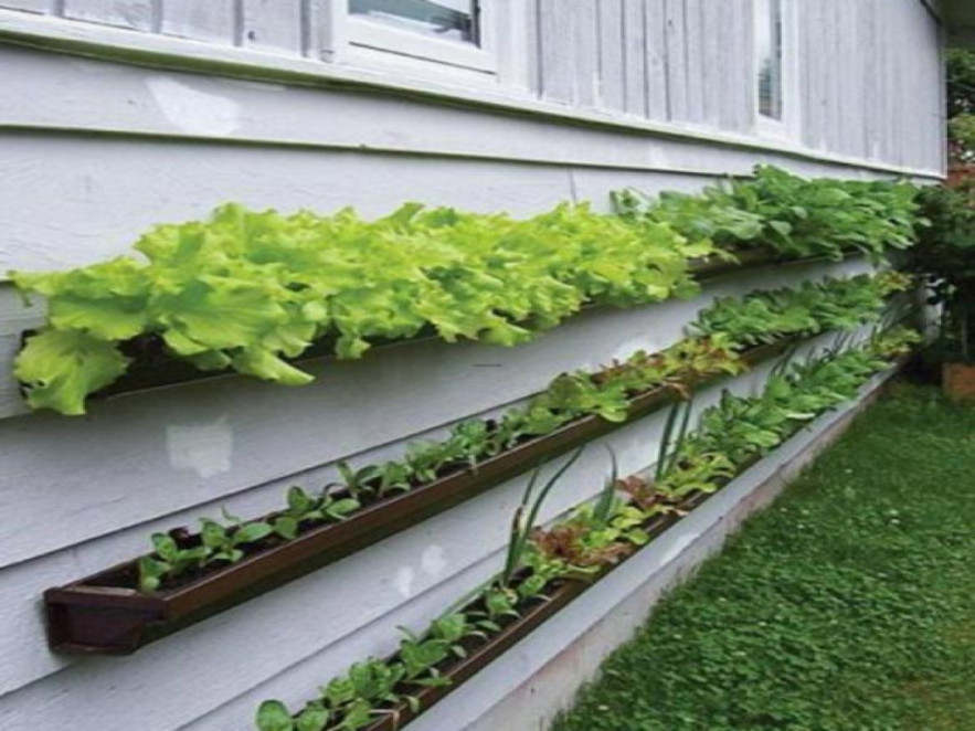 9. Falra rögzített ereszcsatorna, vagy virágláda is alkalmas kisebb gyökérzetű növények - pl. fűszernövények nevelésére.