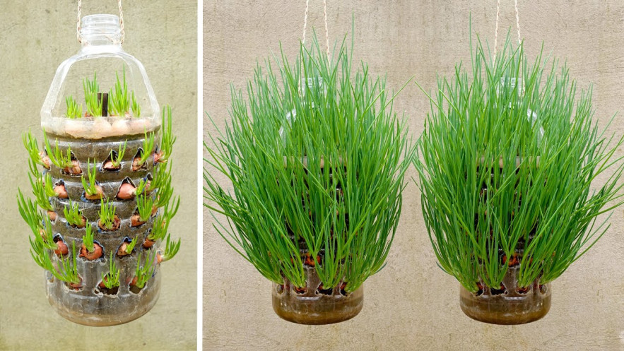 • Amikor belenyomkodtuk a hagymákat állítsuk a flakont egy tálra, és alaposan locsoljuk meg. napos helyen tartva 10-15 napon belül már szüretelhetjük is a hagymaszárakat.