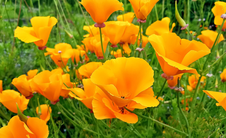 A kaliforniai kakukkmák származási helyéről kapta a nevét, de nálunk hívják még aranymáknak, vagy hálósapkának is. Nagyméretű selyemfényű virágai a napfény hatására nyílnak ki, amint a nap elbújik a felhők mögé máris becsukódnak a kelyhek. Ha kora tavasszal vetjük el a magokat, már június elején virágoznak akár egészen az őszi fagyokig.