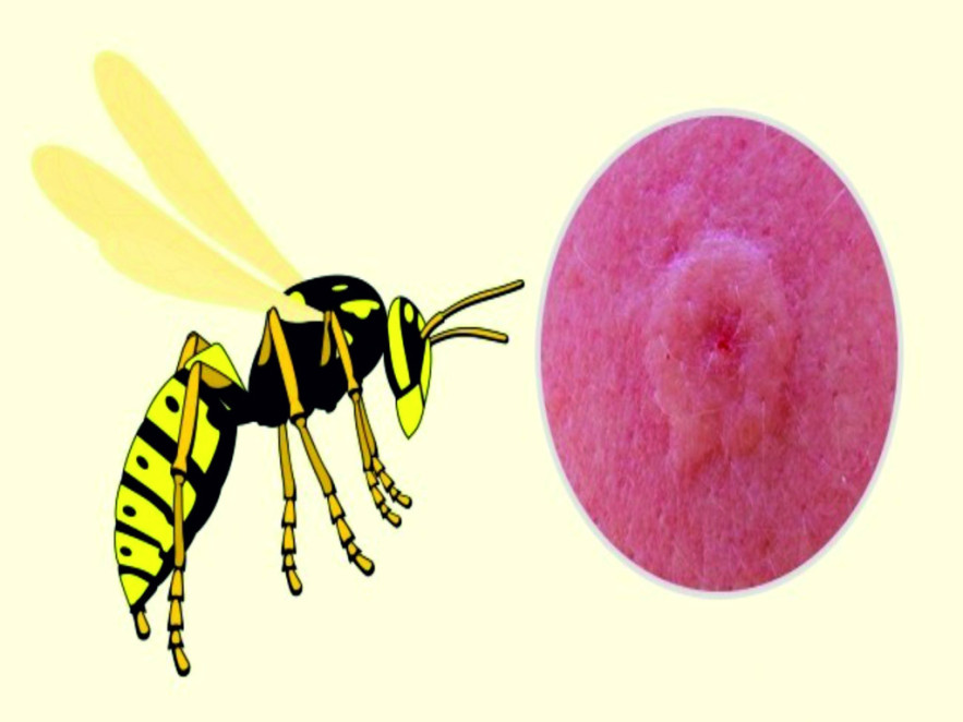 A darázscsípés területe olyan mint egy méhcsípésé. Jön a szúró/égő érzés a vörös duzzadt bőr és később jön a szüntelen viszketés is.
