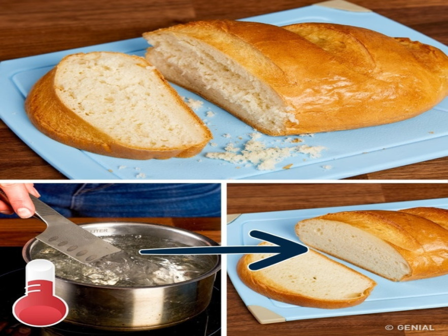 A frissen sütött kenyeret általában csak jó sok morzsa árán tudjuk szeletekre vágni. Ezt kiküszöbölheted, ha forrásban lévő vízbe mártod a kést.
