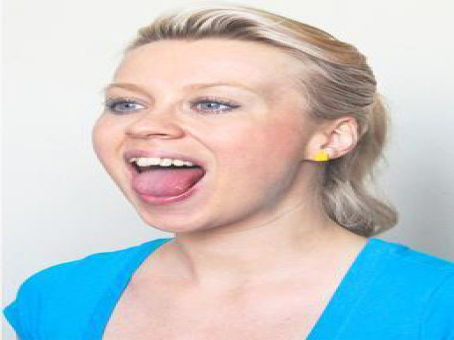 Kényelmes testhelyzetben hajtsuk hátra a fejünket, kicsit nyissuk ki a szánkat és nyújtsuk ki a nyelvünket, amennyire csak tudjuk. Próbáljuk megérinteni a nyelvünk hegyével az orrunkat, majd az állcsúcsunkat.