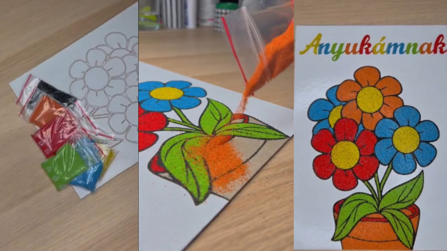 A homokfestés (vagy homokkép-készítés) során színes dekorhomokkal kelted életre a képeket. A folyamat egyszerű, mégis lenyűgöző: egy speciális, ragasztóval ellátott sablonra különböző színű homokot szórunk, amely az előre meghatározott mintában tapad meg. Az eredmény? Gyönyörű, textúrált alkotások, amelyek különleges díszei lehetnek otthonodnak.