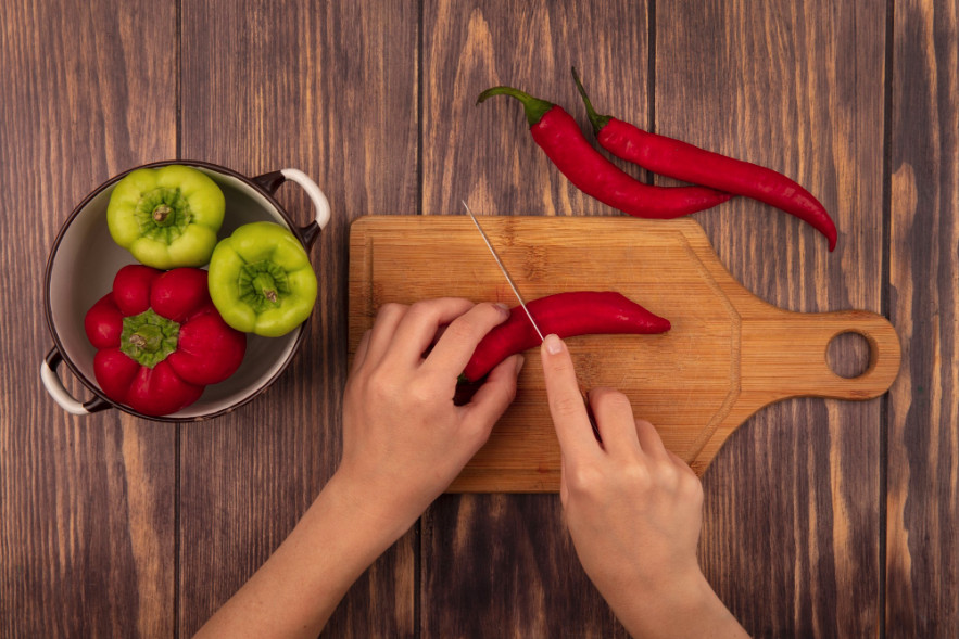 Főzés közben is legyünk óvatosak. Ha chilipaprikát vágtunk, ne hagyjuk a konyhapulton a vágódeszkát vagy a kanalat. Mondani szokták, hogy a világ leggyorsabb dolga egy kisgyerek keze. Ez igaz is. Egy kétéves villámgyorsan odaér, és mire észrevesszük, már túl késő.